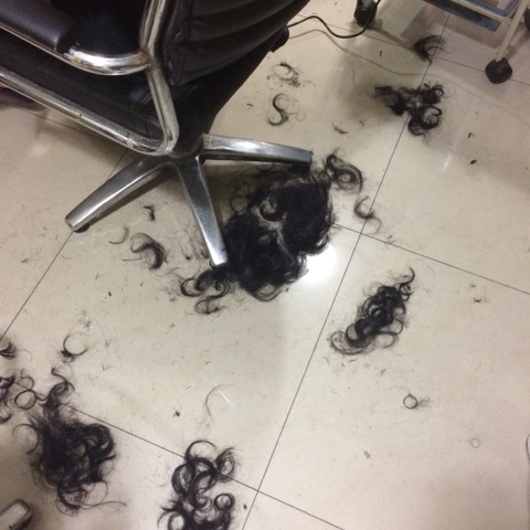 クルクル天然ヘアーなので、羊の毛刈り状態…