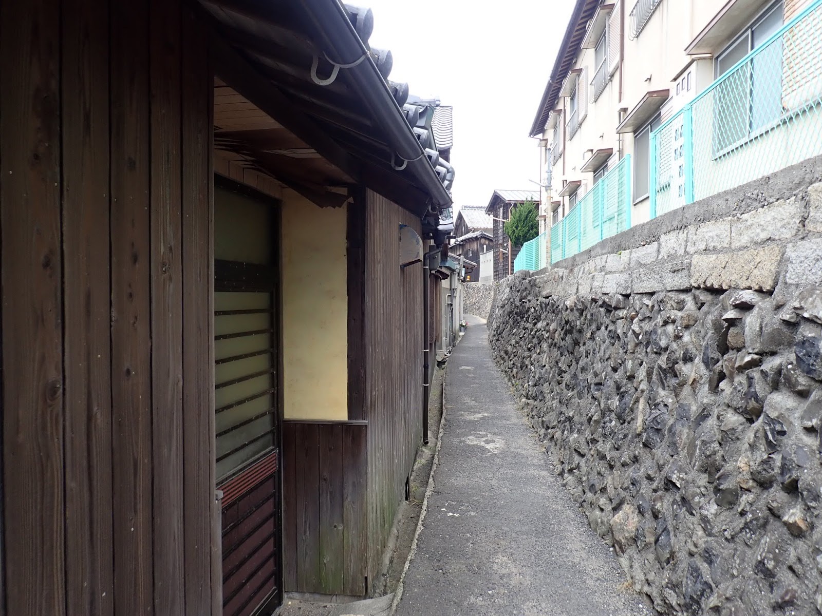 石垣と古民家の間の道をテクテク。