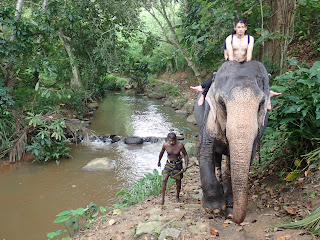 旦那はんは昔、象に乗ったことがあるらしいが、私は触ったことも乗ったこともないので、乗ってみる事にした。